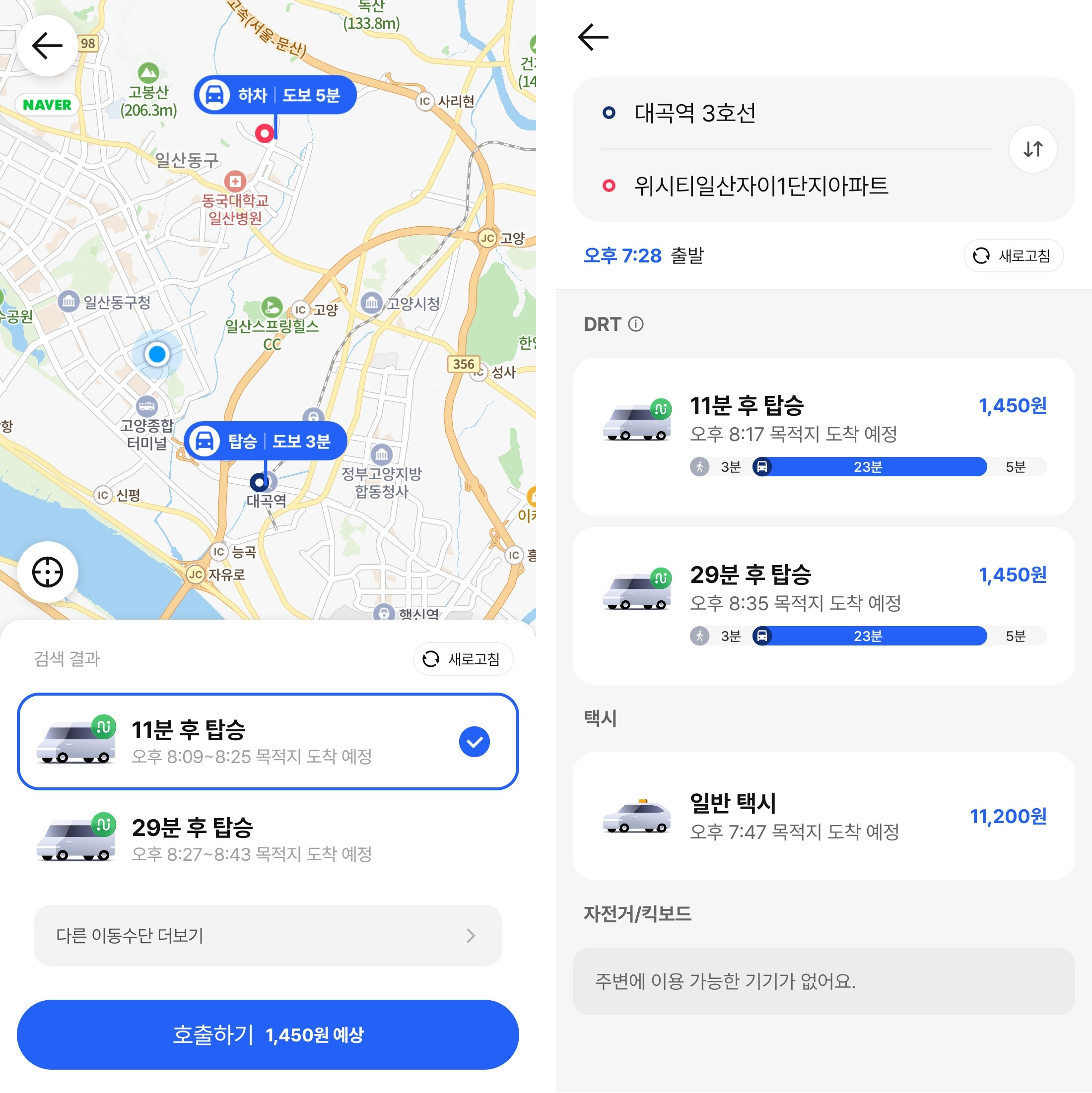 - 출퇴근 시간(평일 오전 6시~9시 30분, 오후 5시 30분~9시 30분)에는 식사동 위시티에서 대곡역까지, 또는 대곡역에서 백마역을 거쳐 식사동으로 오는 고정 노선으로 운행됩니다.