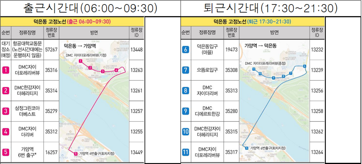 ▷덕은동 출퇴근시간대 노선 승·하차 정류장