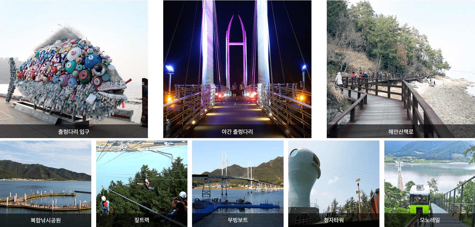 ▶ 가우도: 다도해의 아름다운 풍경을 만끽할 수 있는 섬으로, 해상 데크길을 따라 산책하거나 짚라인을 타며 짜릿한 경험을 할 수 있습니다.